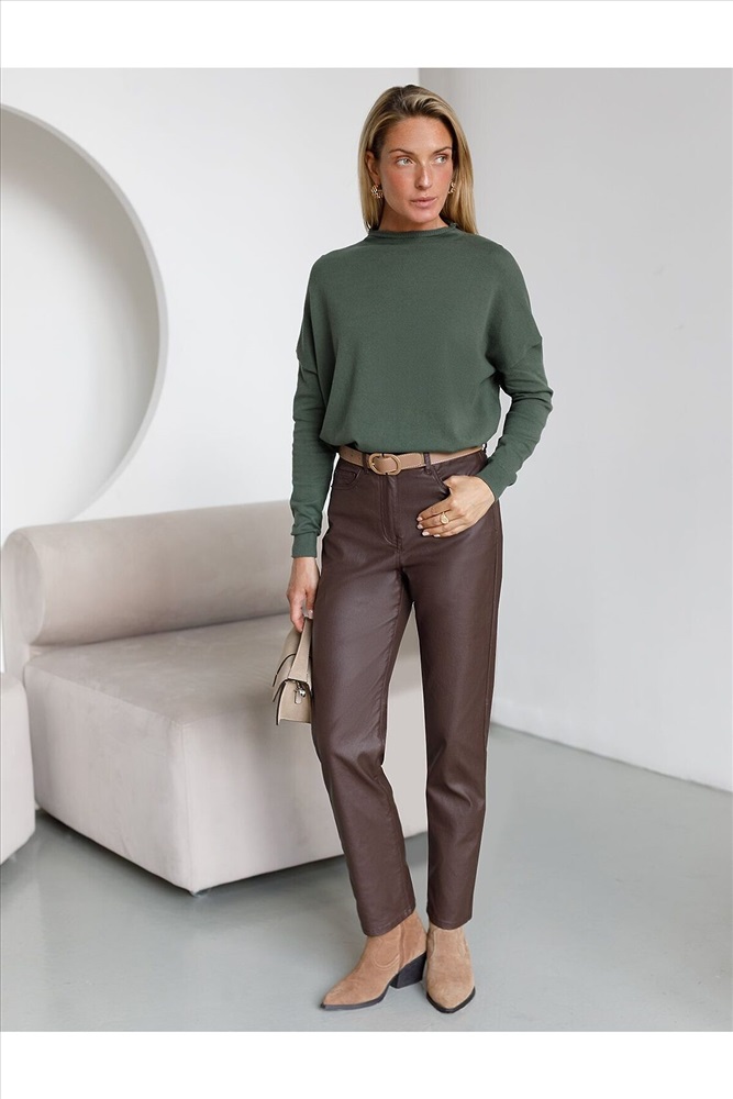 ID товара: 1211913 Акции: -5%, до 24.11.2025 Состав: 70% Хлопок, 22% Полиэстер, 5% ПУ (полиуретан), 3% Полиуретан Сезон: Демисезон Длина: Укороченные Фасон: Зауженные Вид застежки: Молния, пуговица Тип карманов: Накладные, с отрезным бочком Основная ткань: Хлопок Стиль: Повседневный Страна бренда: Россия Страна производства: Китай Удобная посадка подчеркивает фигуру, а свободный крой создает эффектную форму "мом". Особый шов сзади без отстрочки добавляет лаконичность дизайну. Брюки не сковывают движений и приятны к телу. Универсальная коричневая расцветка легко комбинируется с любым верхом – от объемных свитеров до облегающих топов. Идеальный вариант для создания как повседневных, так и более нарядных луков с ноткой дерзости. Практичный материал не мнется и устойчив к износу, делая эти брюки must-have в вашем гардеробе. Комментарии к товару