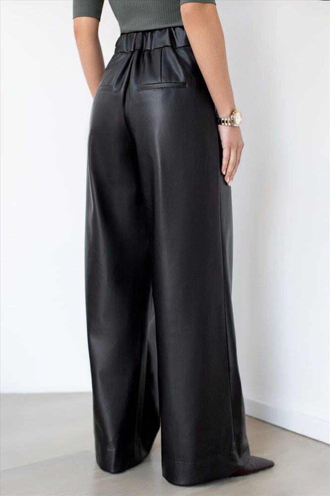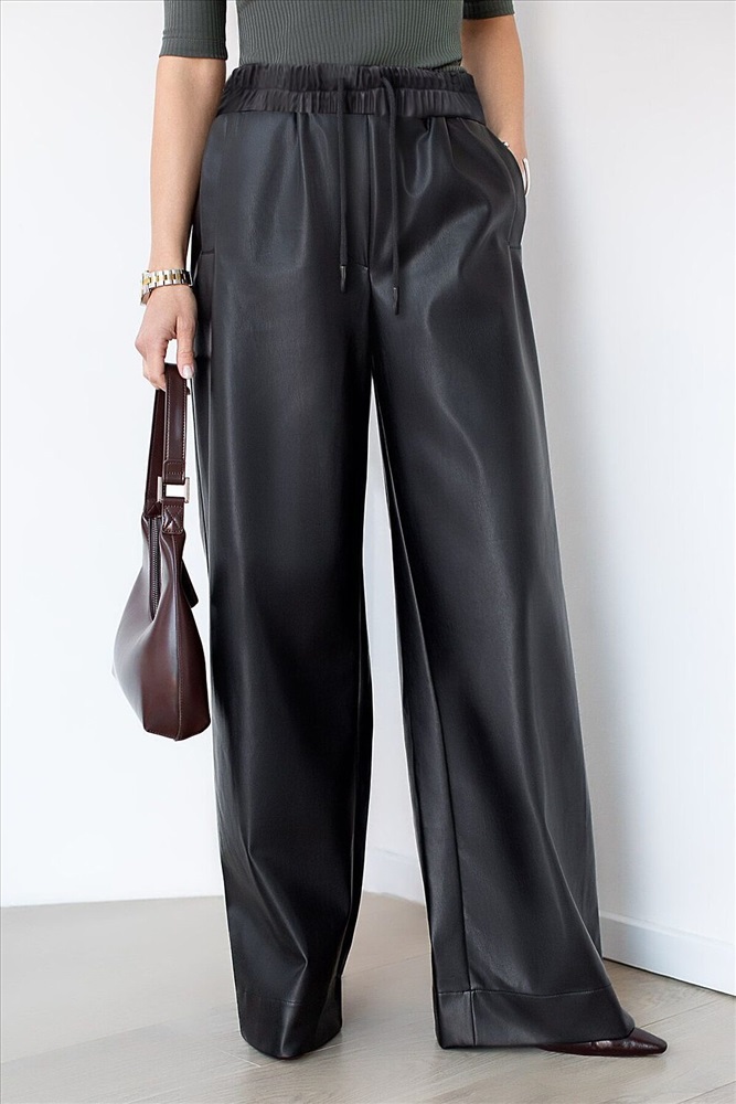Страна производства: Китай Трендовая модель для смелых fashion-образов. Эти брюки из качественной искусственной кожи создают бунтарский урбанистический лук. Модель с высокой посадкой на поясе и равномерно широким клешёным силуэтом от бедра до низа визуально вытягивает фигуру. Мягкая подкладка пояса обеспечивает комфорт, не сдавливая талию. Универсальный черный цвет легко комбинируется с объемными худи, кроп-топами или лаконичными рубашками. Идеальны для создания образов в стиле гранж, streetwear или modern rock-chic.