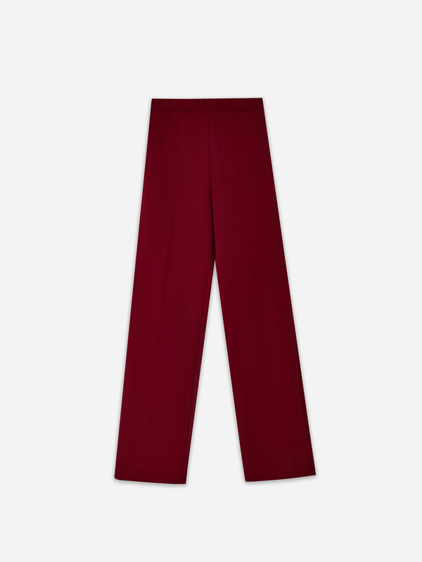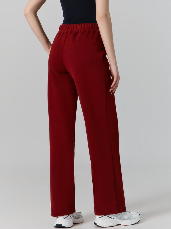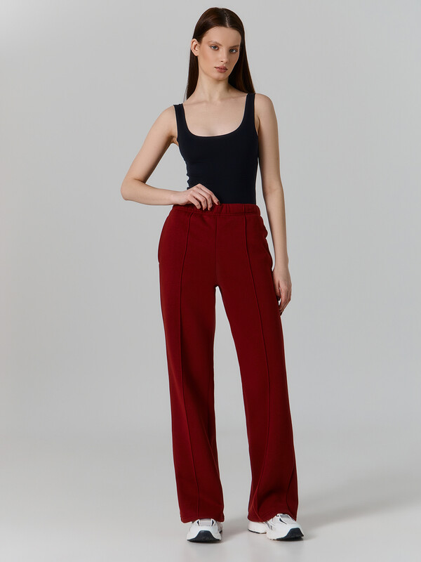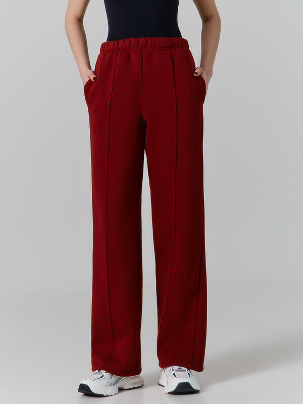 Брюки прямого силуэта. Пояс цельнокроеный с резиной 40RV. В боковых швах карманы с подкладкой из кулирки. По середине передних деталей отстрочки. Низ обработан швом в подгибку.