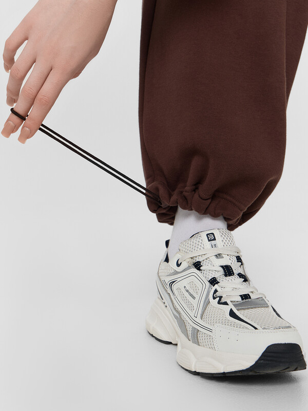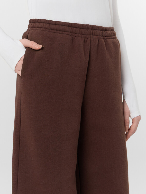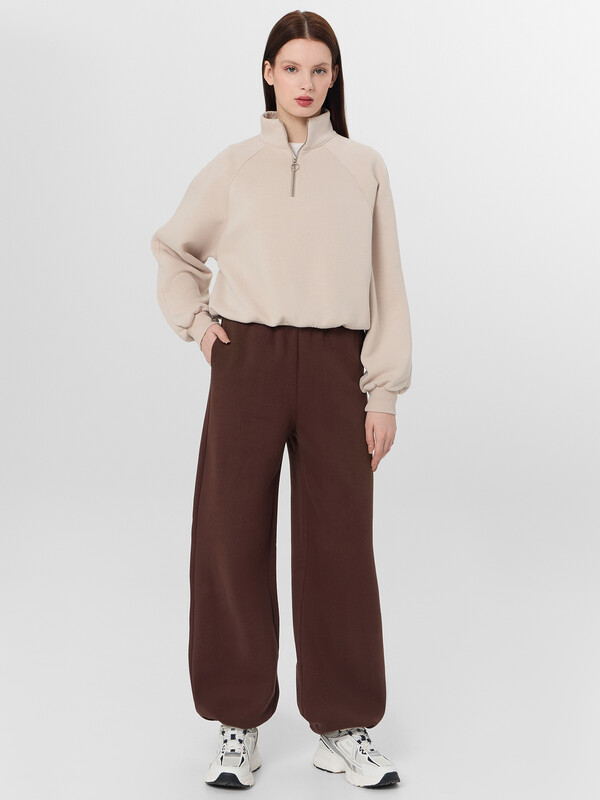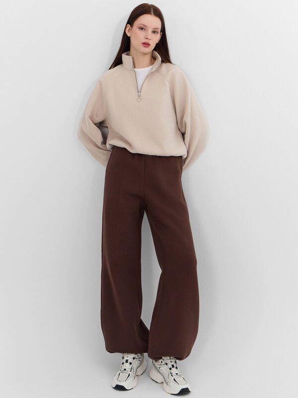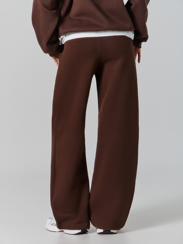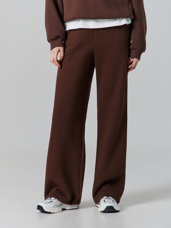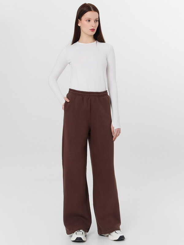Брюки прямого силуэта с карманами в боковых швах. Пояс цельнокроеный с внутренней эластичной тесьмой 40RV. Низ изделия обработан швом в подгибку, внутрь застрочена эластичная круглая тесьма (SKFR-1, 2,8мм) со стопперами (SFFKR-1). Навесной ярлык БАЗА ПРЕМИУМ по заданию