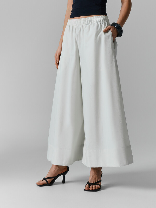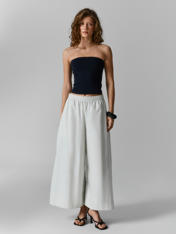 Производитель: Mark Formelle Брюки Свободного силуэта, расклешенные. Пояс цельнокроеный с резиной внутри 40RV. В боковых швах карманы в рамку. Низ впогибку.