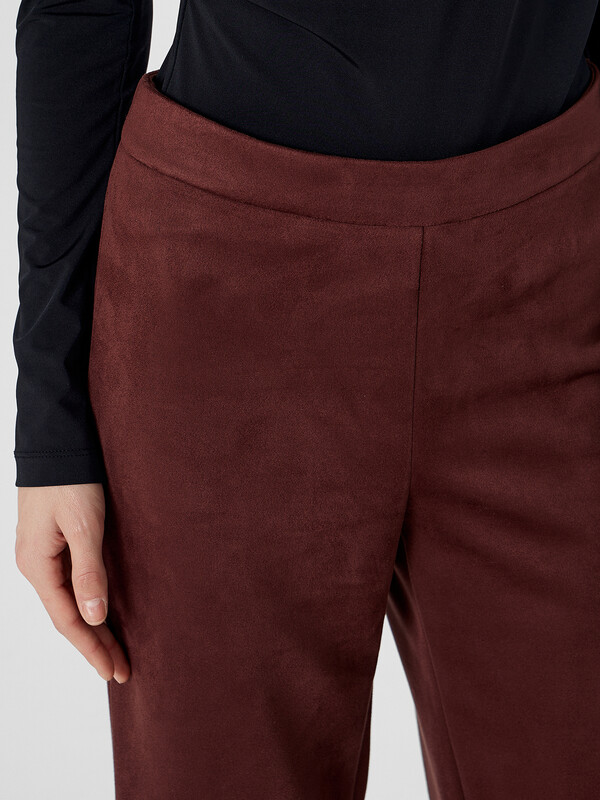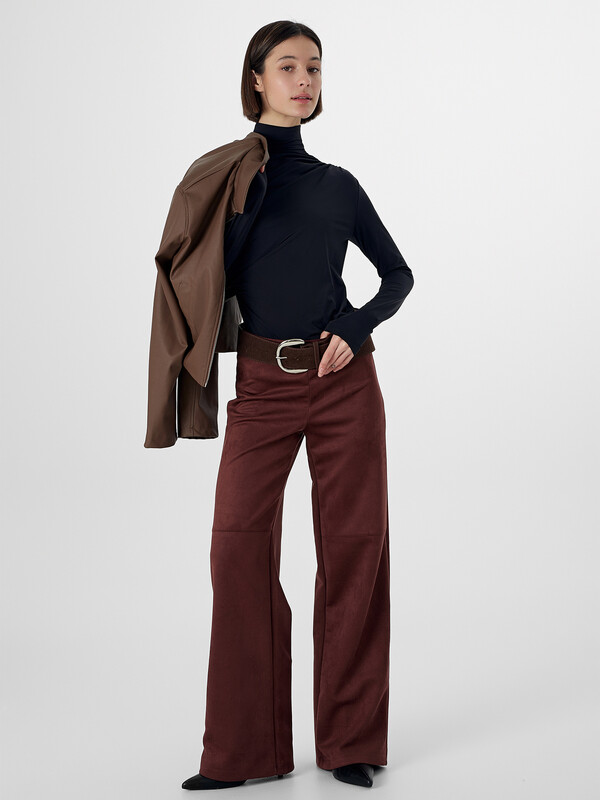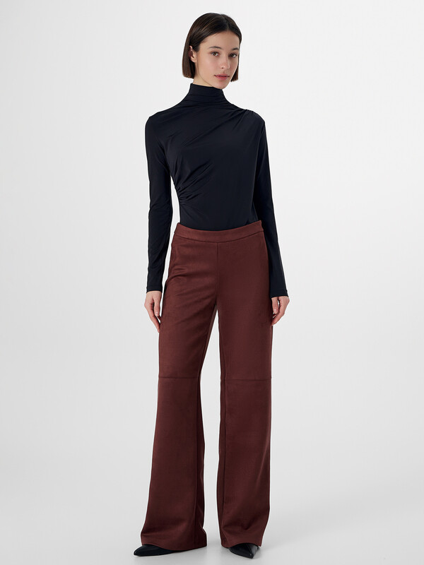 Брюки прямого силуэта. Пояс отрезной. В боковом шве потайная молния (Gizli №4, 5мм). По переду на уровне колена отрезной низ. Низ обработан в подгибку.