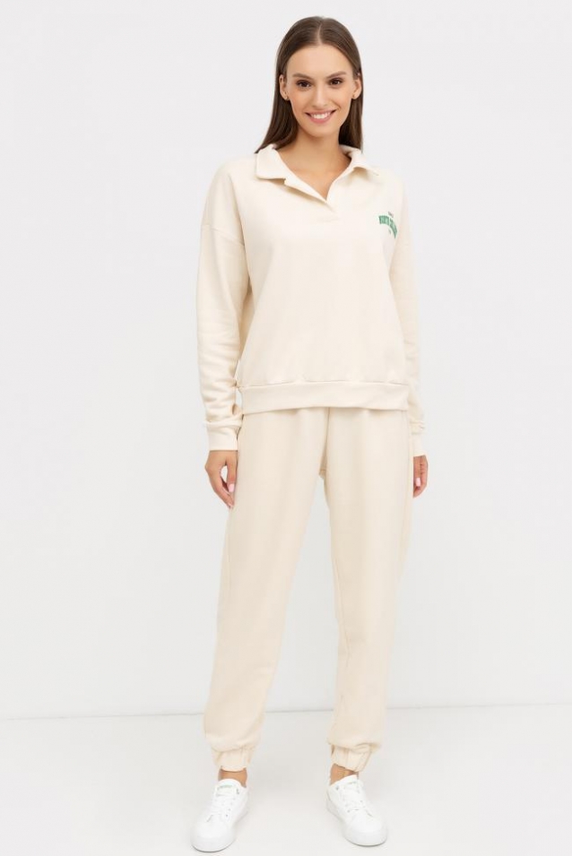 Женские брюки-джоггеры из легкого трикотажного футера без подчеса. Силуэт свободный, максимально расслабленный. Есть удобные боковые карманы. Пояс с эластичной тесьмой внутри. Брюки завершаются манжетами с эластичной тесьмой внутри. Стильные брюки для модных городских образов!