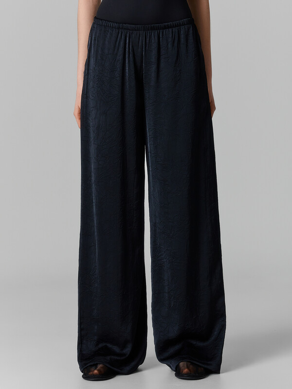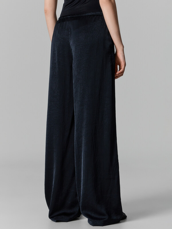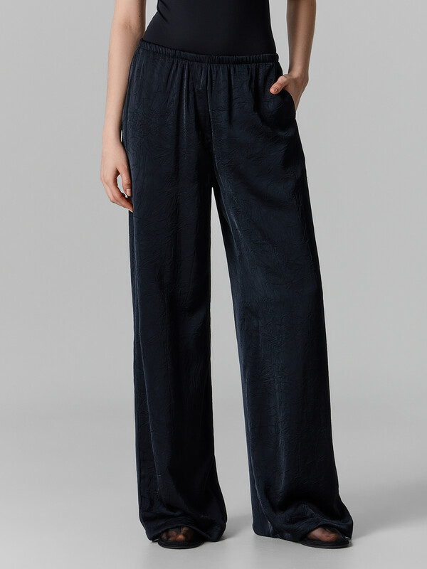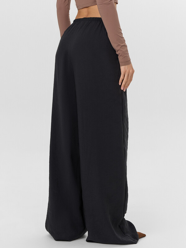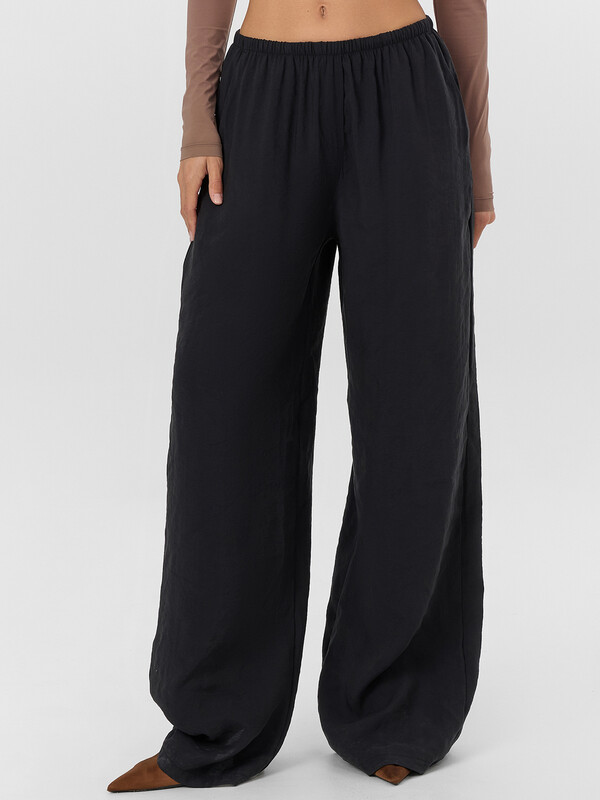 Нижние срезы обработаны аккуратным швом вподгибку, что гарантирует долговечность и опрятный вид даже после активной носки. Универсальный черный цвет делает эти брюки идеальными для комбинации с любым верхом — от классических блузок до объемных свитшотов. Если вы хотите купить широкие брюки, которые сочетают качественные материалы, продуманный дизайн и современный фасон, эта модель станет отличным выбором. Она подойдет для офиса, прогулок или встреч с друзьями, даря уверенность в каждом движении. Широкие женские брюки— это инвестиция в ваш гардероб, которая прослужит не один сезон.