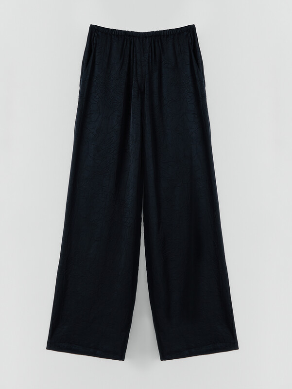 Брюки женские черные — это универсальная модель для создания стильных повседневных образов. Прямой свободный крой со средней посадкой обеспечивает комфорт и свободу движений, а эластичный пояс с регулируемым шнуром-бейкой позволяет идеально подогнать силуэт по фигуре. Функциональные карманы-«хулиганы» с подкладкой из основного полотна добавляют практичности, а декоративная имитация гульфика на правой стороне переда подчеркивает внимание к деталям.