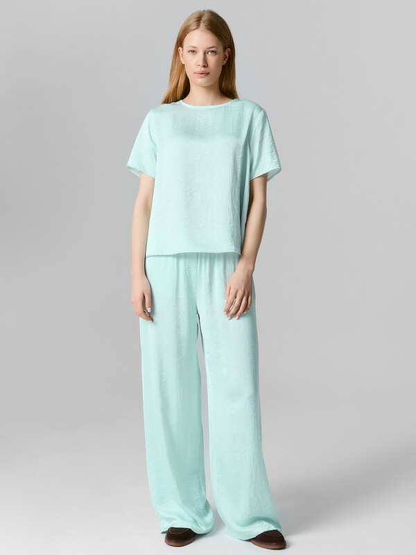 Производитель: Mark Formelle Женские прямые свободные брюки со средней посадкой – отличный выбор для стильного и комфортного образа. Эластичный пояс обеспечивает удобную посадку, а боковые карманы добавляют практичности. Нижние срезы аккуратно обработаны швом вподгибку, что придаёт брюкам завершённый и аккуратный вид. Эта модель выполнена из нежного струящегося материала с добавлением вискозы, которая не только приятно ощущается на коже, но и красиво подчеркивает изящные линии фигуры. Вискоза добавляет брюкам легкость и воздушность, делая их идеальными для теплой погоды.