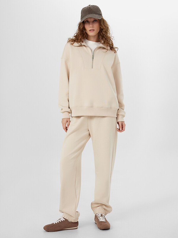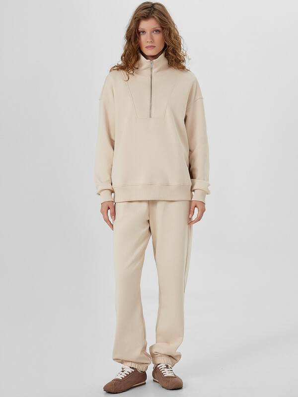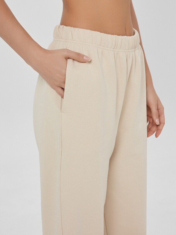 Женские брюки прямые с обычной посадкой на талии и свободным кроем созданы для комфорта. Широкий пояс со встроенной резинкой мягко облегает фигуру, а регулируемый шнурок позволяет подогнать брюки по размеру. Боковые карманы с нежной трикотажной подкладкой добавляют удобства в повседневной носке. Низ брюк аккуратно обработан с эластичной тесьмой, что обеспечивает аккуратную посадку по длине.