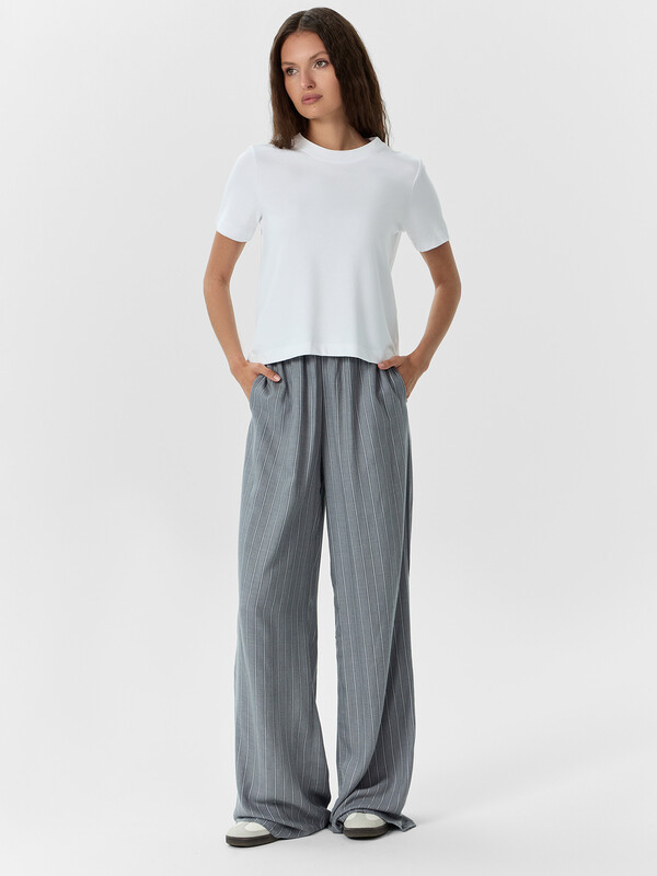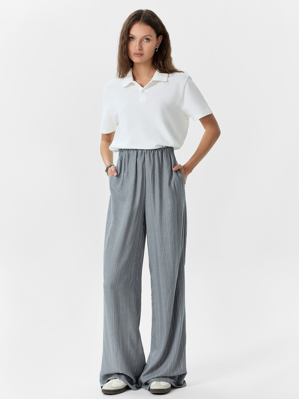 Женские брюки прямого свободного силуэта — это идеальный выбор для тех, кто ценит непринужденный стиль и комфорт в повседневной жизни. Средняя посадка обеспечивает удобную посадку по талии, а эластичный пояс мягко фиксирует изделие, подстраиваясь под индивидуальные особенности фигуры без ощущения сдавленности. Боковые карманы, спрятанные в швах, добавляют функциональности, не нарушая лаконичность дизайна. Нижние срезы аккуратно обработаны швом в подгибку, что придает завершенный вид и способствует сохранению формы изделия после стирок. Изготовленные из вискозы, брюки отличаются мягкостью, легкостью и хорошей воздухопроницаемостью. Ткань красиво драпируется, создавая плавные линии и ощущение легкости при движении. Универсальная модель, которая отлично сочетается с футболками, рубашками или свитшотами — прекрасный базовый элемент как для домашнего образа, так и для прогулок в теплую погоду.