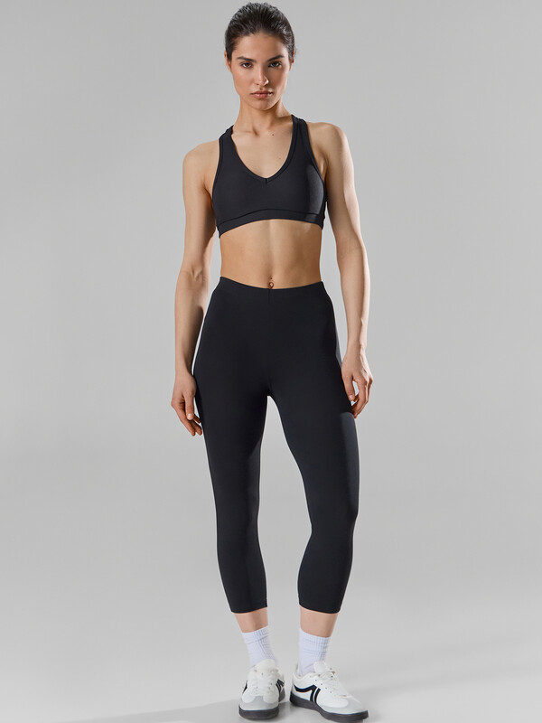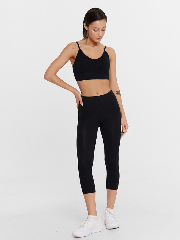 Спортивные бриджи прилегающего силуэта длиной ниже колена. Посадка чуть выше средней. Прочные невыпуклые швы совершенно не ощущаются кожей. В составе полотна – натуральный хлопок и немного эластана. Отличный вариант для спорта, отдыха и домашних дел!