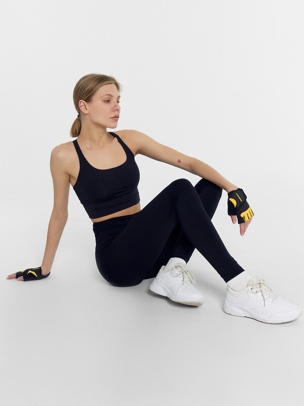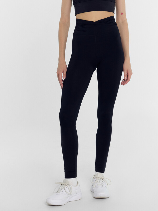 Брюки облегающего силуэта, с высокой посадкой. Брюки без бокового шва с ластовицей. Пояс отрезной широкий, фигурный. Внутри по верхнему срезу пояса настрочена эластичная тесьма. По бокам пояс присборен на эластичную тесьму. Средний и шаговой шов обработан строчками флэт-лок. По шву притачивания пояса проложена отделочная строчка. Нижние срезы обработаны швом вподгибку на 2х иглольной плоскошовной машине. 83% полиамид; 17% эластан Комментарии к товару