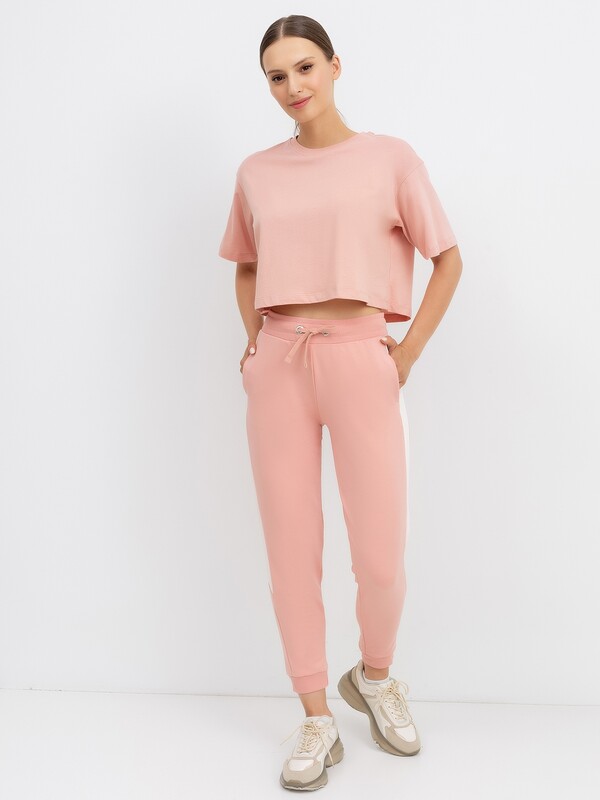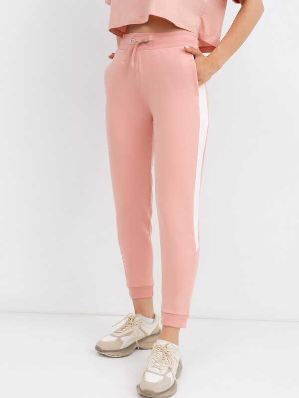 Свободные брюки из эластичного трикотажного полотна с карманами, широкими манжетами и контрастными боковыми вставками. Широкий пояс на резинке дополняет шнур, который позволяет добиться максимально комфортной посадки. Такие брюки подойдут как для повседневного ношения, так и для и занятий спортом.