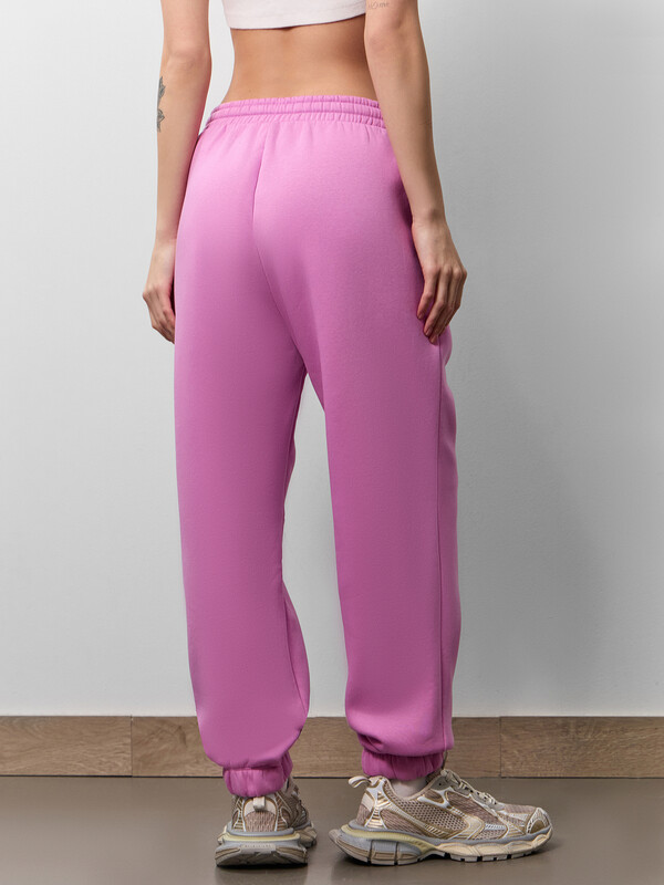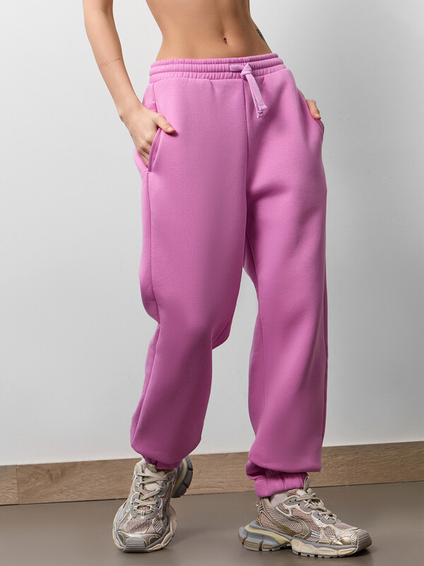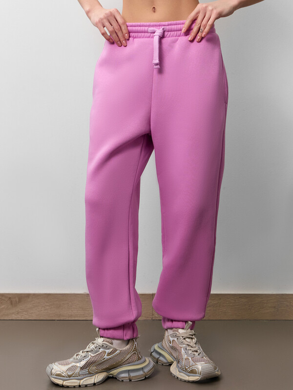 Пояс отрезной с эластичной тесьмой внутри. В передней части с лицевой стороны пробиты петли и втянут шнур (с застр. концами). Низ брюк обработан в подгибку с эластичной тесьмой внутри. 65% хлопок; 35% полиэстер Вид застежки: без застежки Декоративные элементы: без элементов Модель брюк: джоггеры Назначение: повседневная Особенности модели: нет Пол: Женский Предмет: Брюки Тип карманов: в шве Тип посадки: средняя Утеплитель: начес Уход за вещами: деликатная стирка при 30 градусах длина брючин по внутр. шву, см: 72,0 длина изделия по боковому шву - низ, см: 99,5 фактура материала: футер с подчесом ширина брючин - низ, см: 13,5 Комментарии к товару