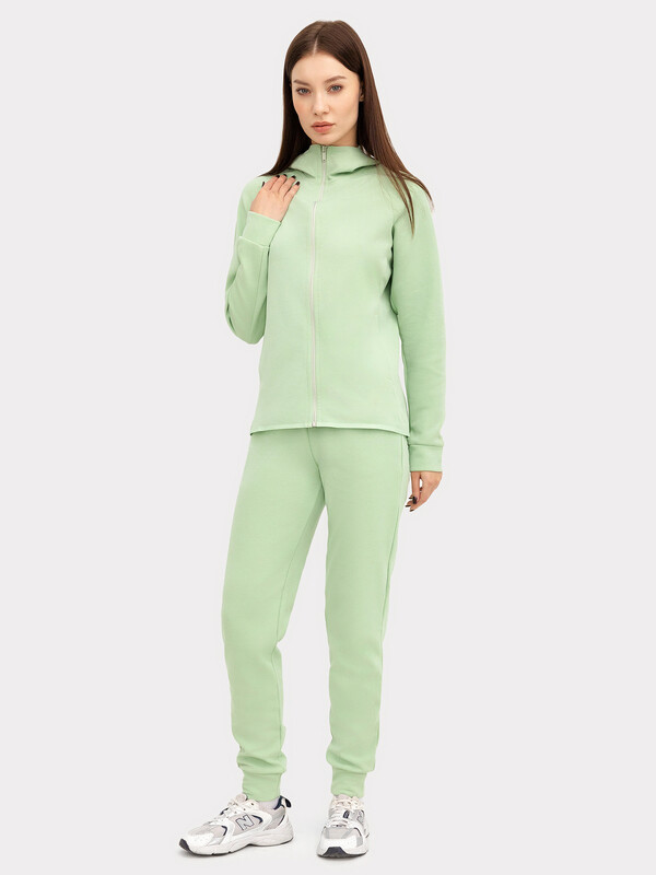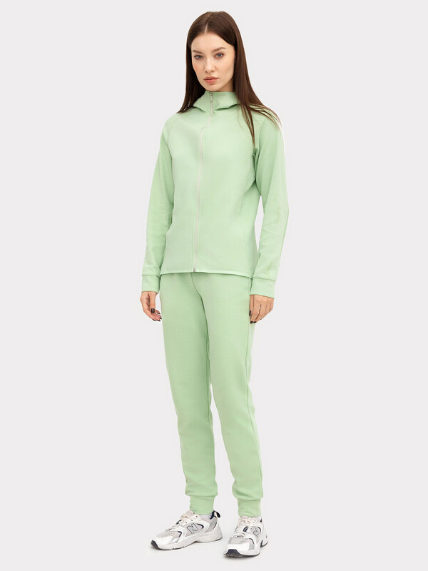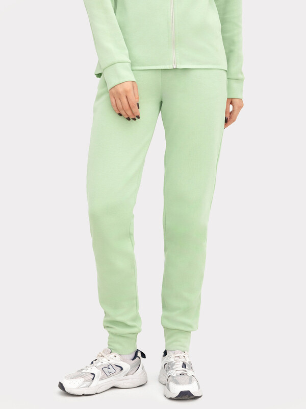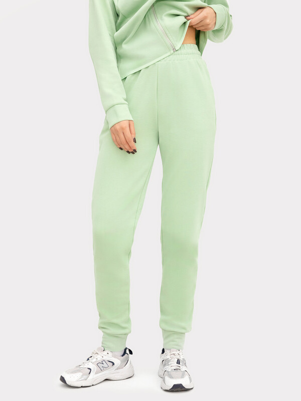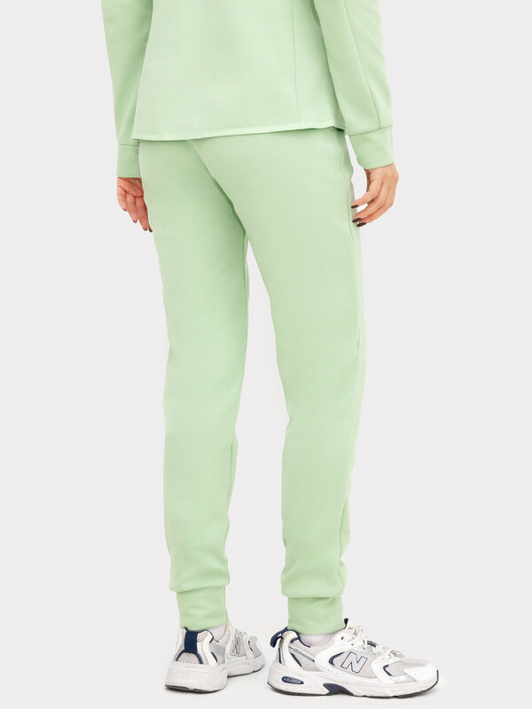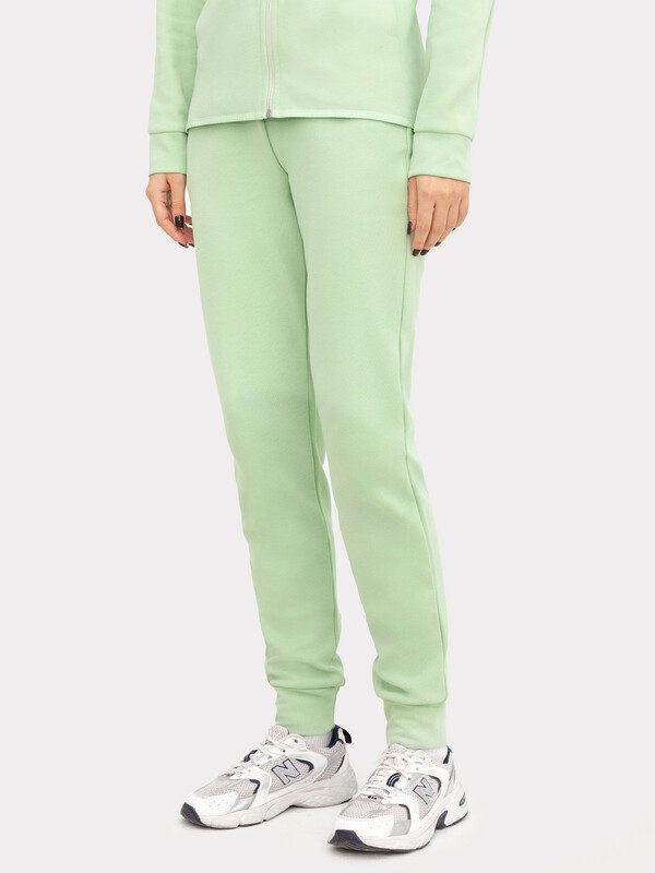 Пояс отрезной из основного полотна с эластичной тесьмой внутри. С внутренней стороны пояса пробиты петли и втянут шнур с застроченными концами. В боковых швах обработаны карманы. Подзор для карманов из основного полотна, подкладка из кулирки. По низу отрезные манжеты из основного полотна. 85% хлопок; 15% полиэстер Вид застежки: без застежки Декоративные элементы: без элементов Модель брюк: прямые Назначение: спорт Особенности модели: нет Пол: Женский Предмет: Брюки Тип карманов: в шве Тип посадки: средняя Утеплитель: без утепления Уход за вещами: деликатная стирка при 30 градусах длина брючин по внутр. шву, см: 74,0 длина изделия по боковому шву - низ, см: 98,0 фактура материала: интерлок ширина брючин - низ, см: 12,0 Комментарии к товару