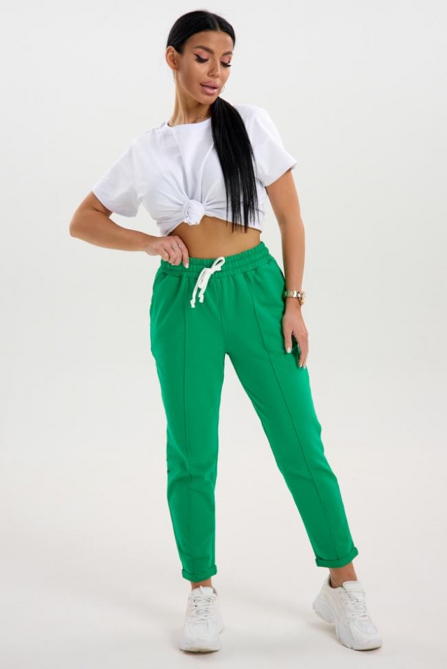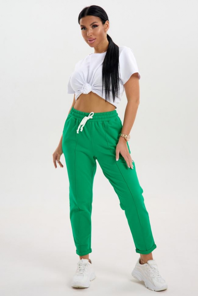 Представляем стильные и универсальные укороченные штаны трикотажные 7/8 на резинке. Эти женские брюки идеально подходят для весны и лета, предлагая комфорт и элегантность. Штаны сочетают в себе элементы бананов и джоггеров, что делает их подходящими как для домашних условий, так и для офиса.
