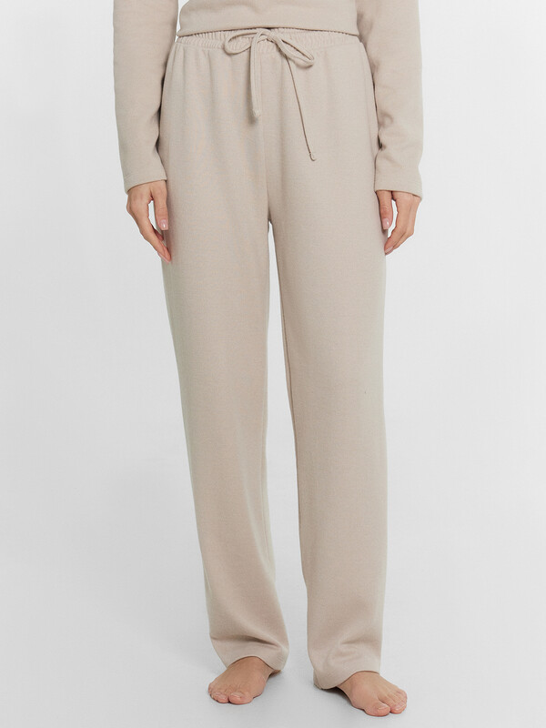 Уют, комфорт и нежность — все это вы найдете в этих домашних женских брюках прямого силуэта из трикотажного полотна. Они созданы специально для сна и отдыха, чтобы вы могли наслаждаться моментами дома с максимальным комфортом. Высокая талия обеспечивает надежную посадку, дарит ощущение уверенности и комфорта. Пояс с эластичной тесьмой внутри и регулировочным шнуром. Сиденье слегка спущено. Неважно, смотрите ли вы фильм дома, читаете книгу, просто готовите, или занимаетесь спортом, эти брюки обеспечат вам необходимую свободу движений и уют. Они идеальны для домашней коллекции и станут незаменимым элементом женского гардероба. Сочетайте их с легкими топами или футболками, чтобы создать непринужденный и модный образ в домашней обстановке. Позвольте себе окунуться в атмосферу уюта с этими домашними брюками. Рекомендуем!