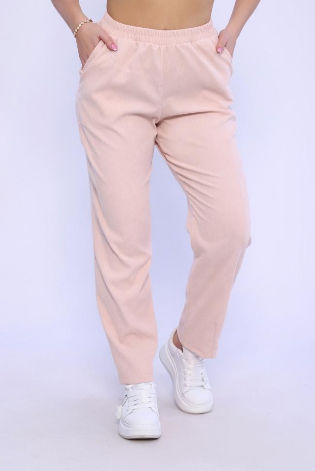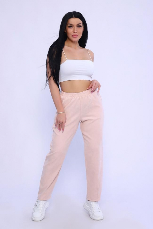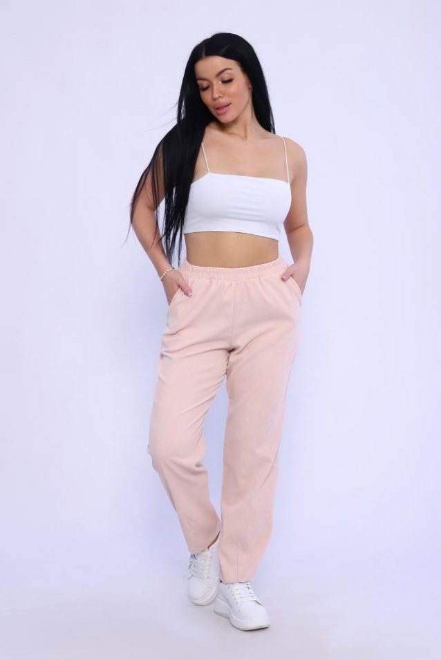 Стильные женские брюки из микровельвета. Широкий притачной пояс на резинке, высокая удобная посадка, боковые карманы, фигурный боковой шов с отстрочкой придаёт брюкам некую изюминку.