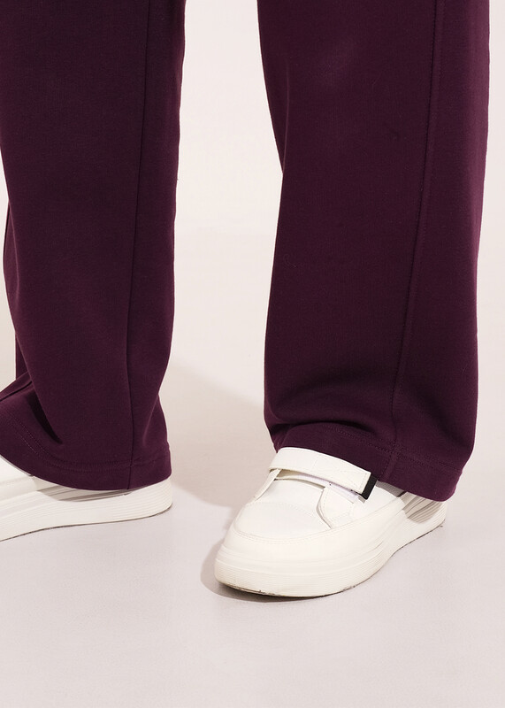 Брюки прямые спортивные из трикотажного полтна футер. По талии притачной пояс на внутренней резинке. Боковые карманы с отрезным бочком. Боковые швы переходят на перед.
