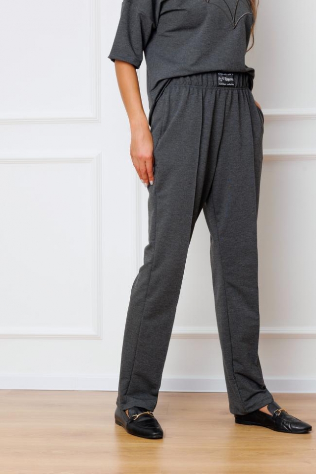 Повседневные брюки Raposa свободного кроя, выполненные в нейтральном оттенке. Модель лаконичного дизайна, что подчеркивает её универсальность. Изделие декорировано стрелками, а также дополнено боковыми карманами. Ткань - футер. Состав - 60% хлопок, 40% полиэстер. Длина изделия 104 см. Рост модели на фото 173 см. Рекомендуем сочетание с футболкой арт.342