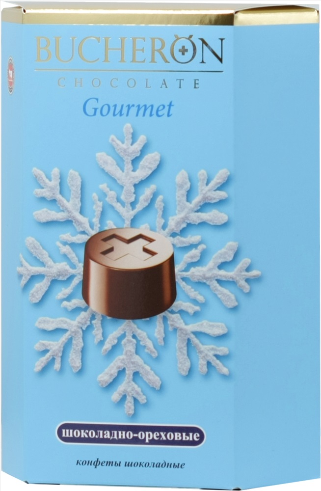Конфеты в корпусе из молочного шоколада с муссовым пралине из фундука и какао.Шоколадные конфеты BUCHERÖN GOURMET приготовлены по оригинальной швейцарской рецептуре из отборных африканских какао-бобов, благодаря которым конфеты имеют нежную, шелковую текстуру, тонкий аромат и изысканный вкус. BUCHERÖN предлагает Вам оценить благородное послевкусие конфет с оттенками орехов, собранных на солнечных турецких плантациях.