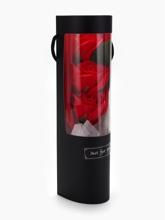 Подарите ароматный штрих весны с набором из трех искусственных красных роз. Этот изысканный презент поражает воображение и создает атмосферу свежести. Подходит для 8 Марта, его красота в "тубе" подарит радость вашей супруге, маме или дочери, став идеальным дополнением к торжеству или нежным жестом внимания. Дар для взрослых женщин, ценящих эстетику и комфорт.