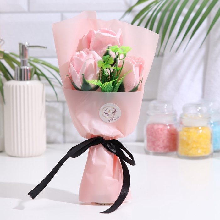 Благодаря точному повторению мелких деталей мыльные розы схожи с настоящими цветами. Композиция наполняет помещение тонким и ненавязчивым цветочным ароматом.