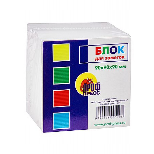 Наименование: Бумага для заметок 9х9х9 см белая, непроклеенная БЗ-6407 Проф-Пресс Упаковка: 1\ 18 Страна: Россия Производитель: Проф-Пресс min цена: 84,56 руб.