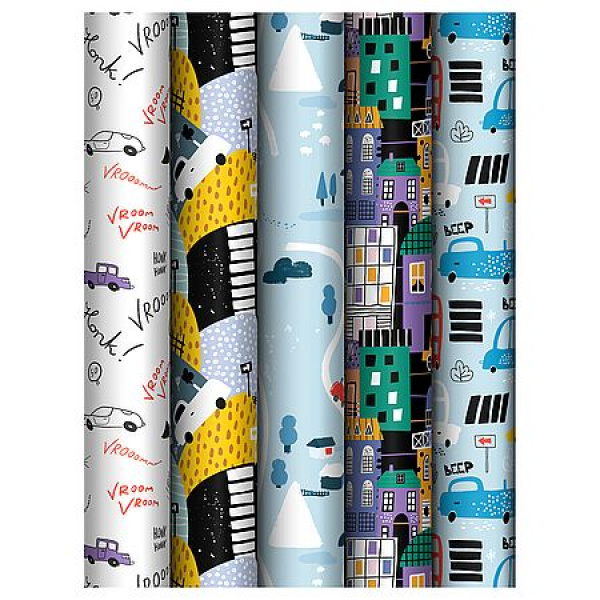 Упаковочная бумага MESHU Cars с глянцевой поверхностью прекрасно подходит для упаковки и декорирования подарков. Универсальный размер 70х100 см позволит упаковать предметы разных габаритов. Плотность бумаги – 80 г/м2. Представлено 5 дизайнов с машинками. Рулон упакован в термоплёнку для удобной транспортировки и хранения.Ассорти дизайнов в транспортном коробе. При заказе меньше короба, не можем гарантировать равное количество каждого вида дизайна.