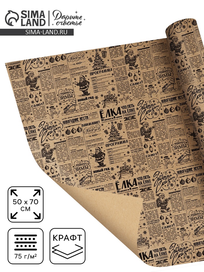 Габариты: 0,5 x 0,5 x 49 Доставка: Платная Страна: Россия В боксе: 300 шт Состав: Бумага Материалы: бумага Фасовка: по 10 шт Индивидуальная упаковка: Без упаковки Сертификат: ЕАС Размер, м: 0.5 х 0.7 Цвет: Коричневый Плотность, г/м²: 75 Тематика: Новогодняя Тематика праздника: Новый год Вид: В листах Тип листа: Односторонний Особенность крафта: С рисунком Дизайн: С рисунком, надписью Комментарии к товару