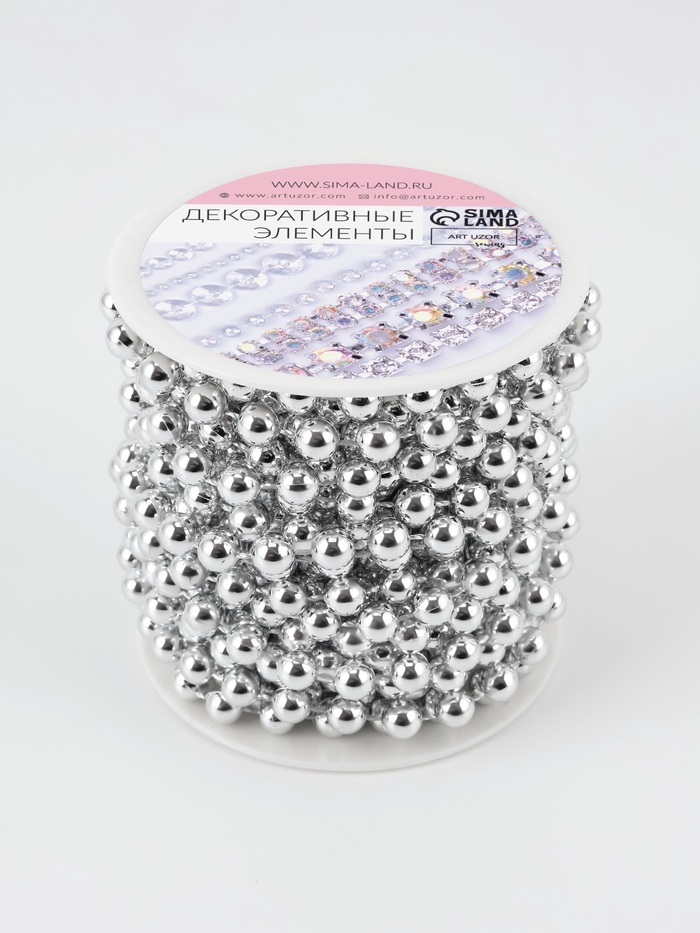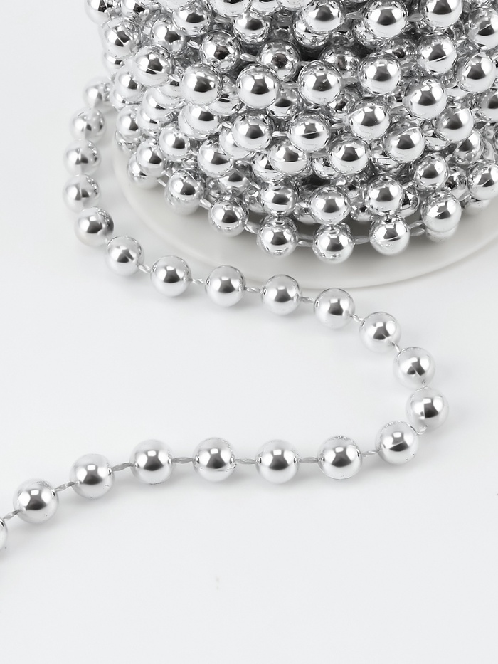 Добавьте блеска вашему творчеству! Серебристые бусины на нити, диаметром 7.5 мм универсальный материал для создания ярких украшений, декора интерьера и оформления праздников. Гибкая нить длиной около 9 метров предоставляет свободу для воплощения любых дизайнерских идей.