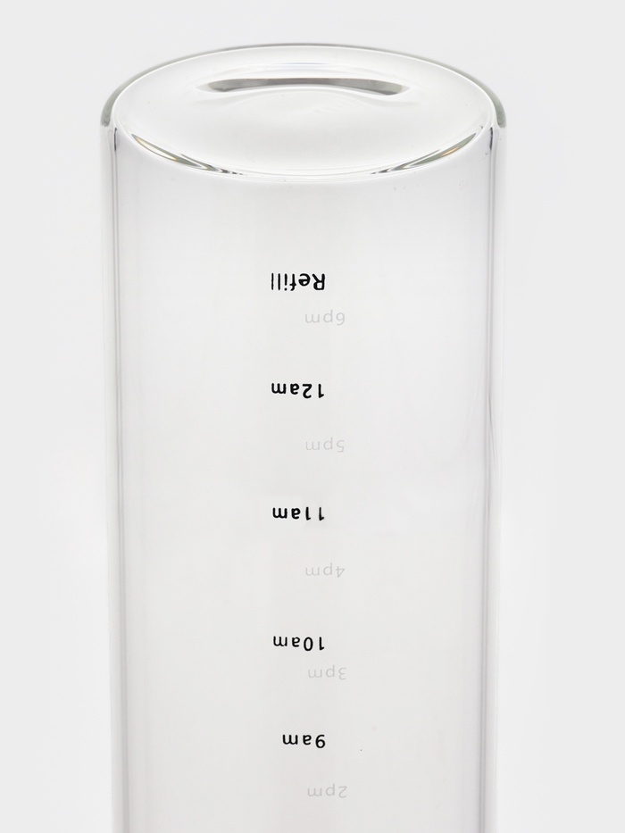 - Шкала времени: на корпусе нанесены временные метки от утра до вечера. Они показывают, сколько воды стоит выпить к определённому часу. Это работает без приложений — просто смотрите и пейте.