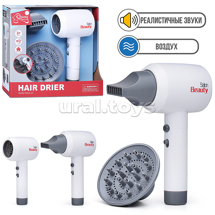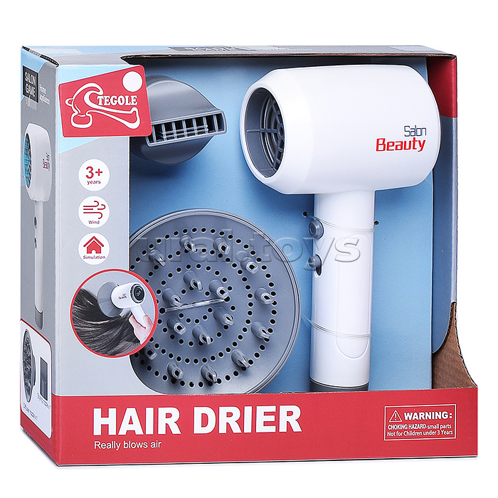 Код: 465921 Штрихкод: 6933116657629 Страна производитель: Китай Размеры упаковки: 22 x 20 x 8 см Количество в коробке: 30 Размер фена: 9 х 6 х 18 см. Размеры круглой насадки 10,5 х 4 см. Размеры плоской насадки 4,5 х 5 см. Фен работает от 1 батарейки АА, не входит в комплект. Игрушечный фен выдувает воздух, издает звук работающего прибора, насадки меняются. Материал: полимерные материалы, пластика. Соответствует требованиям безопасности продукции. Для детей от 3 лет. Комментарии к товару