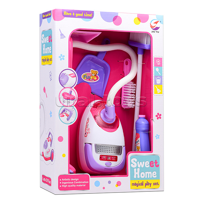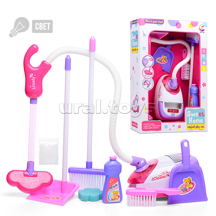 Код: 487180 Штрихкод: 6904111265683 Страна производитель: Китай Размеры упаковки: 29.5 x 13 x 45 см Количество в коробке: 6 • Размеры игрушки: 19х11х10 см. • Длина шланга: 75 см. • Работает от 3-х батареек "АА" (не входят в комплект). • Функции: - всасывание мелких частиц. - подсветка корпуса. - гудение мотора. • В комплекте: 2 щётки, 2 совка, пенопластовые шарики. • Материал: пластик. • Соответствует требованиям безопасности продукции. • Для детей старше 3-х лет. Комментарии к товару