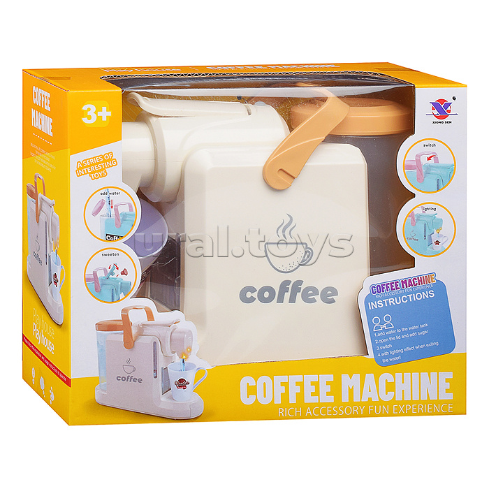 Код: 495696 Штрихкод: 6933117594671 Страна производитель: Китай Размеры упаковки: 24 x 20 x 11 см Количество в коробке: 12 • Размеры игрушки: 22х8.5х16.5 см. • Функции: - звук варки. - подсветка. - в резервуар можно налить воды, которая будет течь в кружку. • Кофеварка работает от 3-х батареек "АА" (не входят в комплект) • Материал: пластик. • Соответствует требованиям безопасности продукции. • Для детей от 3-х лет. Комментарии к товару