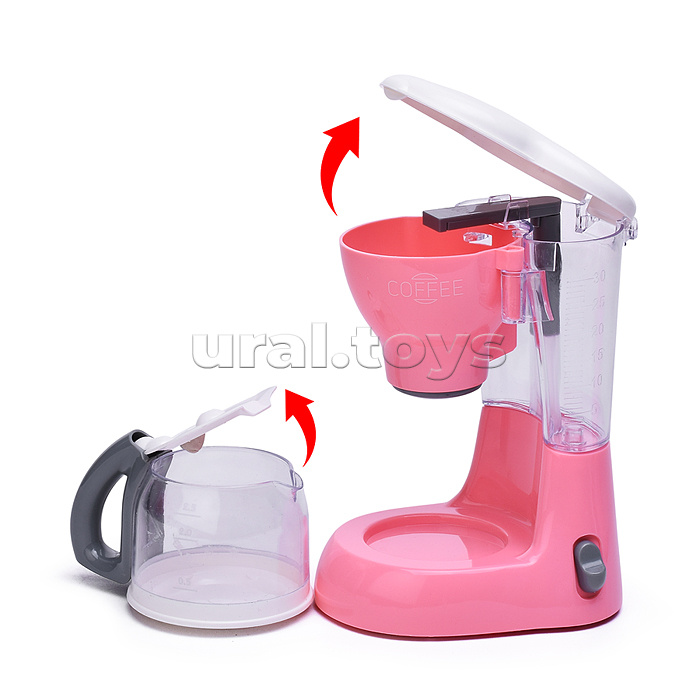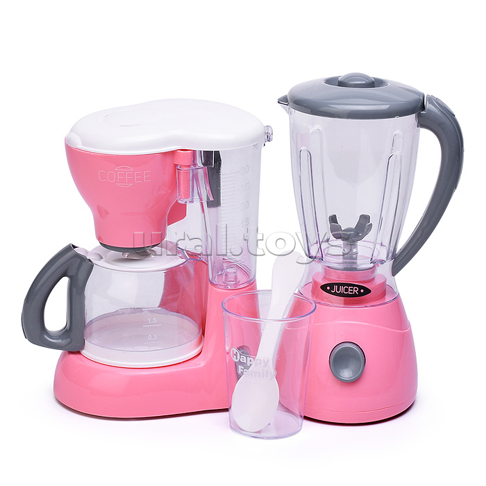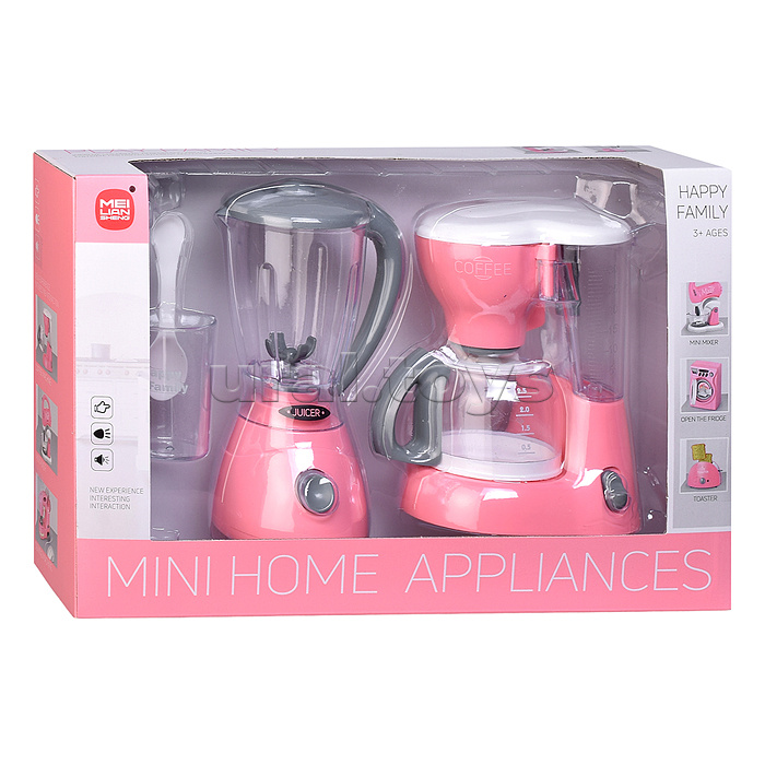 Код: 491060 Штрихкод: 6933118040276 Страна производитель: Китай Размеры упаковки: 34 x 22 x 10 см Количество в коробке: 18 • В наборе: - блендер (8,5х6,5х17 см.) - кофеварка (12.5х9.5х15,5 см.) - стакан (5х6,5 см.) - ложка (9,5 см.) • Функции блендера: вращение винта, свет индикатора, звук работы. • Функции кофеварки: звук варки, подсветка. • Блендер работает от 2-х батареек "АА" (не входят в комплект) • Кофеварка работает от 3-х батареек "ААА" (не входят в комплект) • Материал: пластик. • Соответствует требованиям безопасности продукции. • Для детей от 3-х лет. Комментарии к товару