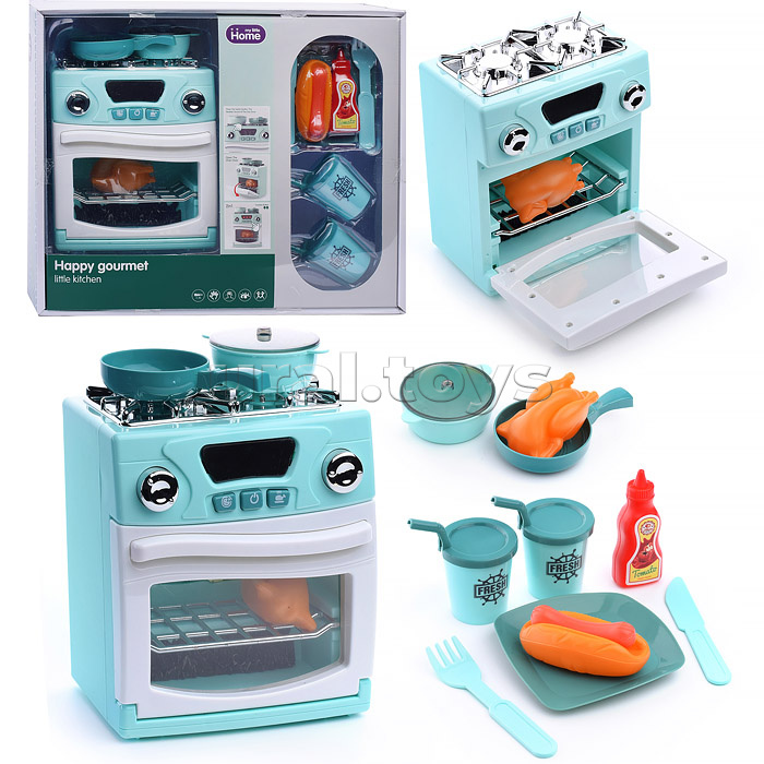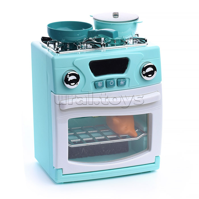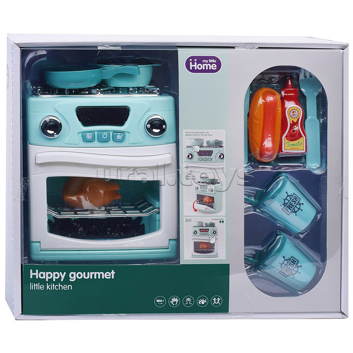 Код: 381922 Страна производитель: Китай Размеры упаковки: 34 x 11.5 x 28 см Количество в коробке: 24 • В наборе: - плита (15х9.5х17 см.) - кастрюля с крышкой (7.5х6х2.5 см.) - сковорода (9.5х6х2 см.) - тарелка, вилка, нож. - 5 фигурок продуктов. • При включении плита издаёт звуки готовки, в духовом шкафу горит подсветка. • Дверцу духового шкафа можно открывать. • Плита работает от 3-х батареек "АА" (не входят в комплект) • Материал: пластик. • Соответствует требованиям безопасности и стандартам качества продукции. • Для детей от 3-х лет. Комментарии к товару