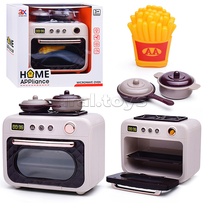Код: 492684 Штрихкод: 6904111732222 Страна производитель: Китай Размеры упаковки: 19 x 18 x 9 см Количество в коробке: 54 • Размеры игрушки: 14х8,5х11.5 см. • Работает от 2-х батареек "АА" (не входят в комплект). • Функции: - открывается дверца. - подсветка. - мелодия. • В комплекте: сковорода с крышкой, кастрюля с крышкой, картофель фри. • Материал: пластик. • Соответствует требованиям безопасности продукции. • Для детей от 3-х лет. Комментарии к товару