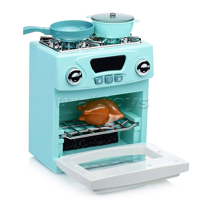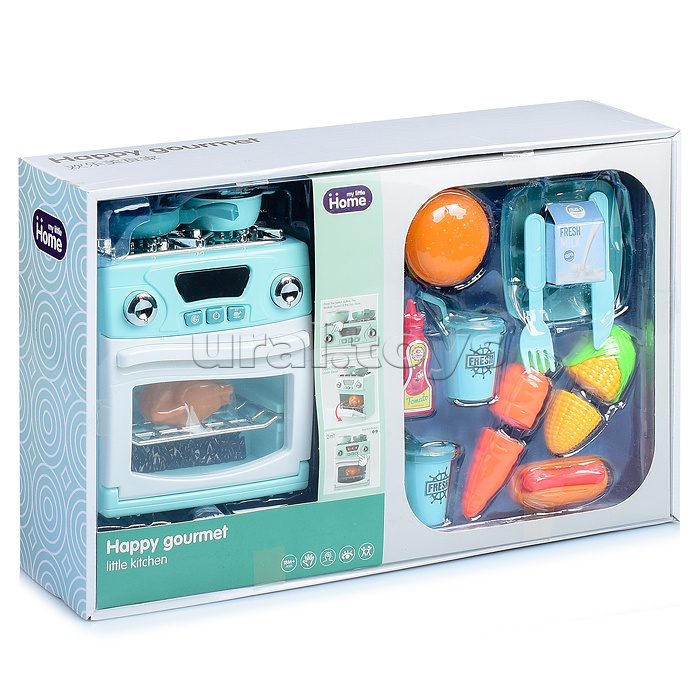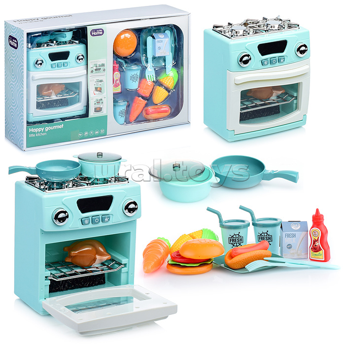 Код: 379282 Страна производитель: Китай Размеры упаковки: 44 x 11 x 28 см Количество в коробке: 18 В наборе плита, посуда (7) и продукты (7). Функции плиты: • звуки зажигающегося газа, бурлящей воды, кипящего масла; • красная подсветка над кнопками и в духовке; • работает от 3-х батареек «АА» (не входят в комплект). Размер плиты: 15 х 10 х 17 см. Размер аксессуаров: 6 – 11 см. Материал: пластик. Для детей от 3-х лет. Соответствует требованиям безопасности продукции. Комментарии к товару