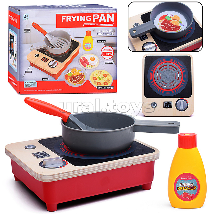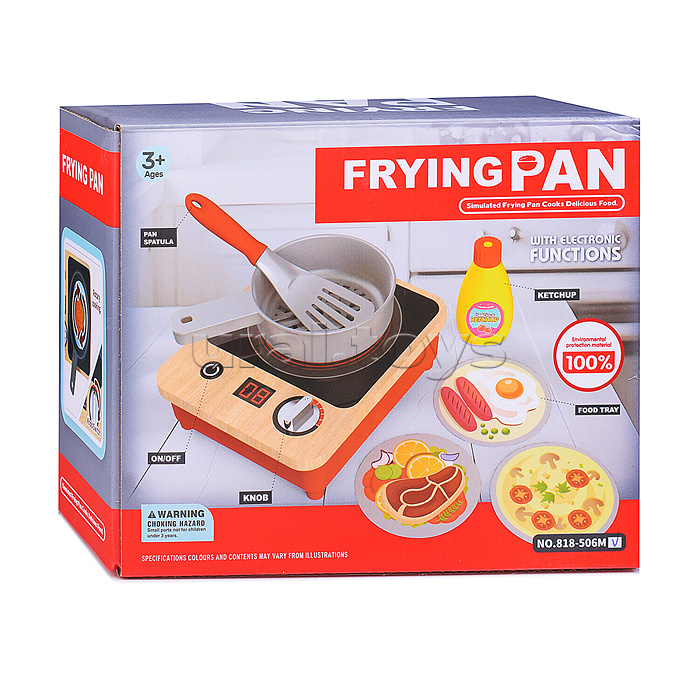 Код: 486748 Штрихкод: 6904111524759 Страна производитель: Китай Размеры упаковки: 19 x 16 x 9 см Количество в коробке: 36 • В наборе: - варочная панель (15х18,5х5,5 см.) - сковорода (16х10.5х3,5см.) - лопатка (16,5х4,5 см.) - аксессуары. • Функции варочной панели: - при включении комфорки дует воздух. • Варочная панель работает от 3-х батареек "АА" (не входят в комплект) • Материал: пластик, дерево. • Соответствует требованиям безопасности продукции. • Для детей от 3-х лет. Комментарии к товару