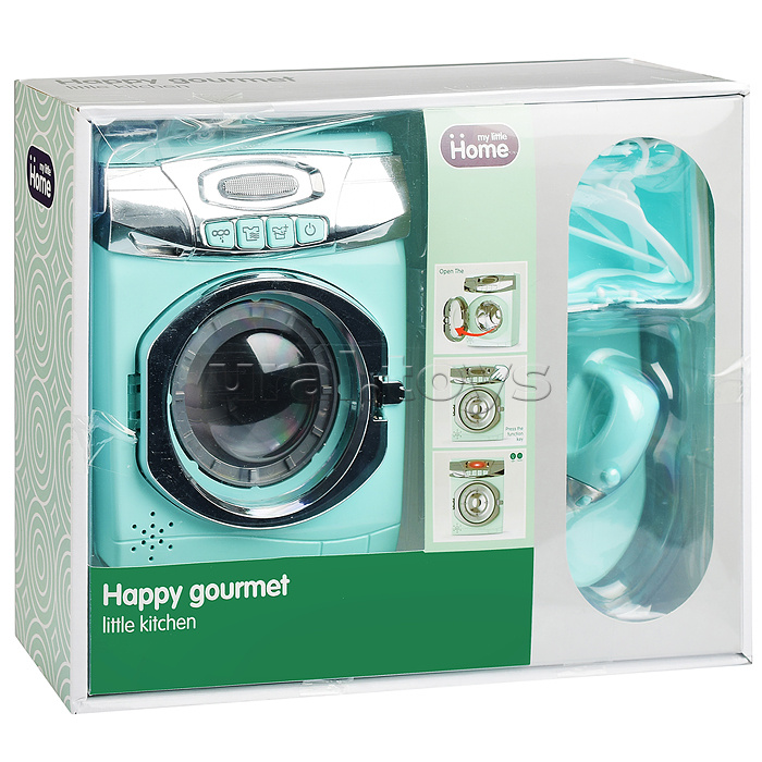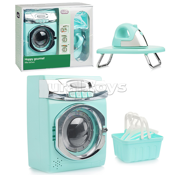 Код: 353872 Штрихкод: 6933111990301 Страна производитель: Китай Размеры упаковки: 31.5 x 10 x 24 см Количество в коробке: 24 • Размеры игрушки: 13.5х9х17.5 см. • Работает от 3-х батареек "АА" (не входят в комплект). • Функции: - открывается дверца. - звук бурления воды. - вращение барабана. • В комплекте: гладильная доска, утюг, корзина для белья. • Материал: пластик. • Соответствует требованиям безопасности продукции. • Для детей от 1.5 лет. Комментарии к товару