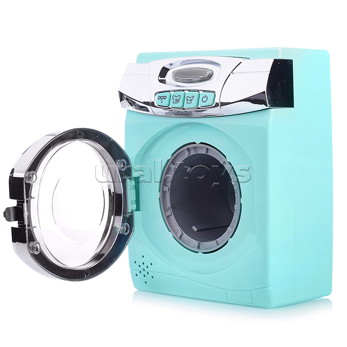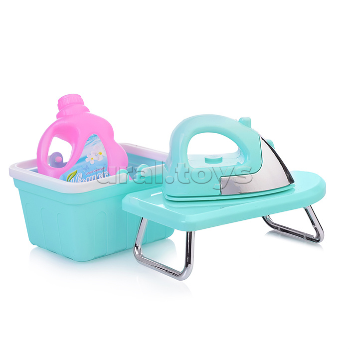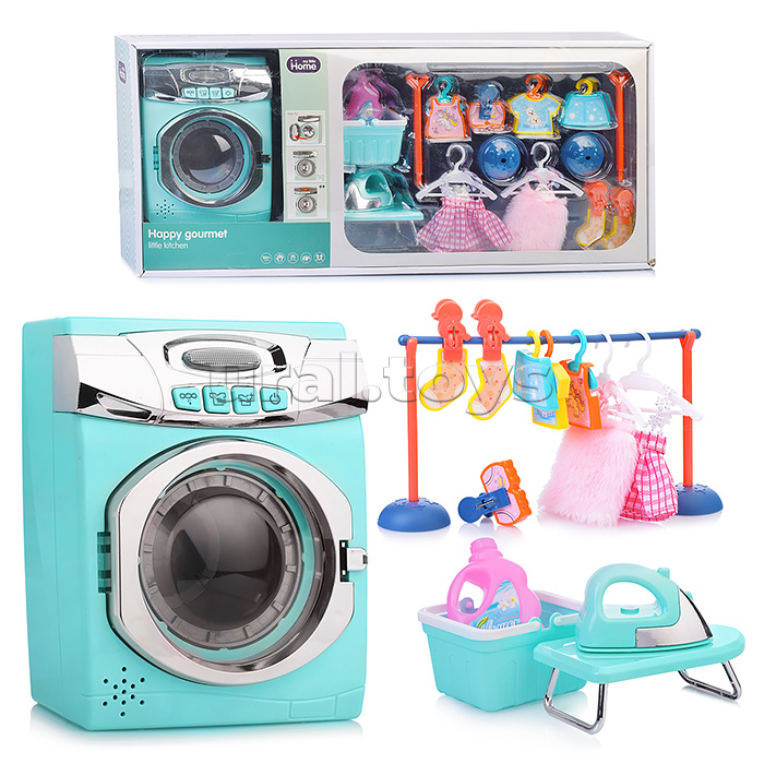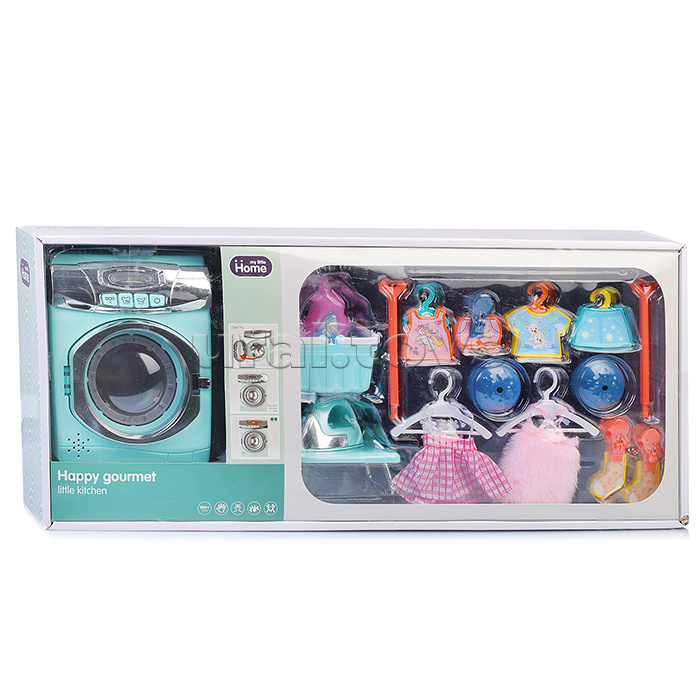 Код: 353816 Страна производитель: Китай Размеры упаковки: 57 x 10 x 25 см Количество в коробке: 18 • Размеры игрушки: 13.5х9х17.5 см. • Работает от 3-х батареек "АА" (не входят в комплект). • Функции: - открывается дверца. - звук бурления воды. - вращение барабана. • В комплекте: гладильная доска, утюг, корзина для белья, пластиковые фигурки одежды, прищепки. • Материал: пластик. • Соответствует требованиям безопасности продукции. • Для детей от 1.5 лет. Комментарии к товару