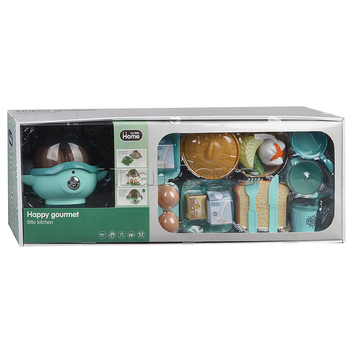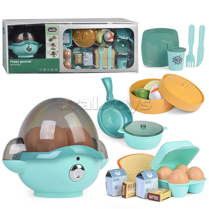 Код: 459748 Штрихкод: 6904110039117 Страна производитель: Китай Размеры упаковки: 58 x 21.7 x 14.8 см Количество в коробке: 12 Размеры игрушки: 17х12.5х16 см. Работает от 2-х батареек "АА" (не входят в комплект). Функции: - открывается крышка. - вращение диска. - звук бурления воды. В комплекте: коробочка для яиц, 8 яиц, корзина, сковорода, кастрюля, стаканчик, тарелка, вилка, нож, овощи, тостер. Материал: пластик. Соответствует требованиям безопасности продукции. Для детей от 3 лет. Комментарии к товару