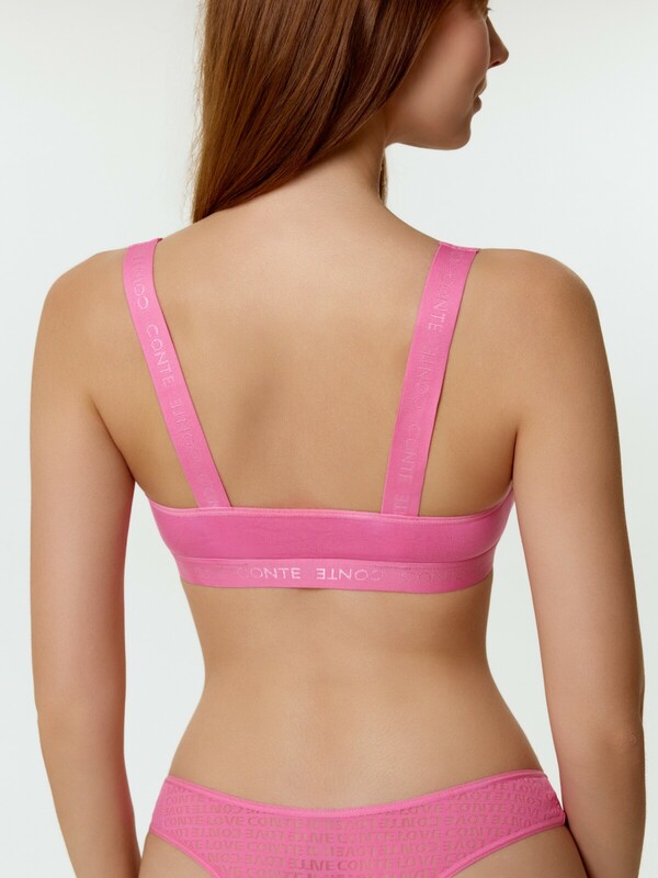 • без каркасов • глубокая V-образная линия декольте • мягкие треугольные чашки • по переду вставка из полупрозрачной сетки с надписью «CONTE LOVE» • мягкое полотно с модалом • по низу настрочена широкая эластичная тесьма с глянцевым логотипом бренда • сохранение формы и цвета при соблюдении рекомендаций по уходу. вискоза (модал) 75%, полиамид 17%, эластан 8% Комментарии к товару