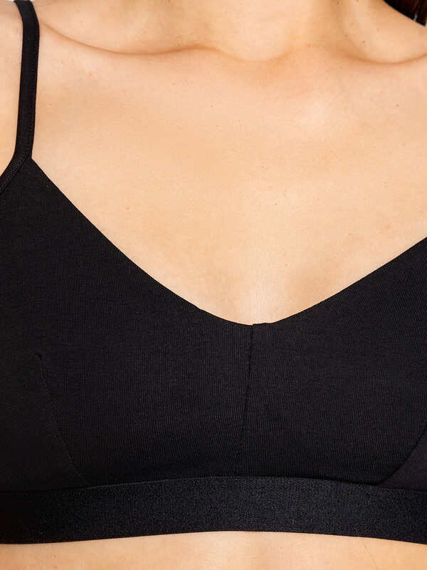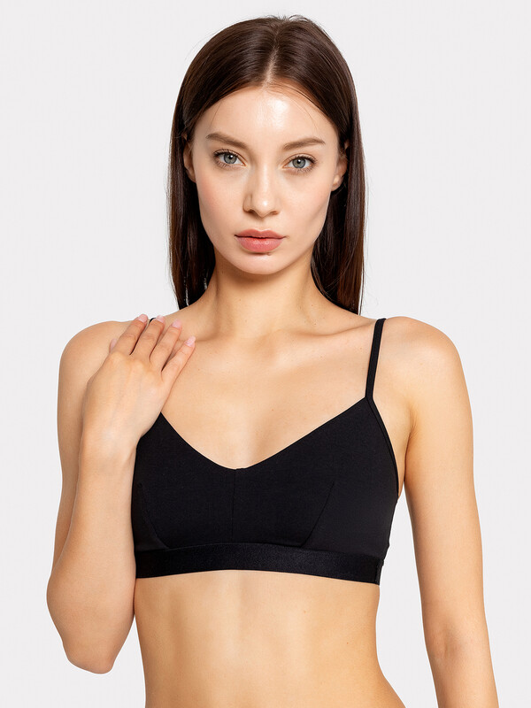 Бюстье базовой расцветки из хлопкового полотна – гипоаллергенного и приятного на ощупь. Мягкие чашки без косточек гарантируют полный комфорт. Бретели в бюстье регулируются. По нижнему срезу проходит жаккардовая тесьма.