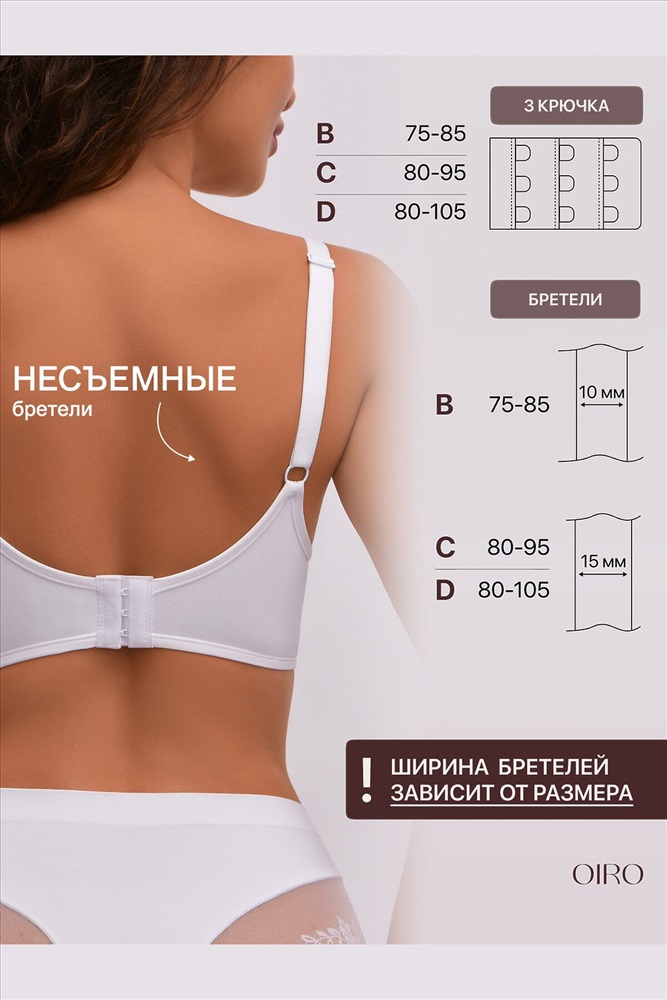ID товара: 1211662 Состав: 82% Нейлон, 18% Эластан Сезон: Демисезон Основная ткань: Нейлон Модель лифа/бюстгальтера: С плотной чашкой Вид ткани: Нейлон Страна бренда: Россия Страна производства: Россия Забудьте о дискомфорте и ощутите легкость с бюстгальтером OIRO Snowdrop! Формованные чашки без косточек обеспечивают мягкую и естественную поддержку, не сковывая движения. Дышащая микрофибра подарит ощущение комфорта в течение всего дня, а нежное кружево добавит вашему образу изысканности. Регулируемые бретели позволят идеально подогнать бюстгальтер по фигуре. OIRO Snowdrop это прекрасный выбор для тех, кто ищет идеальный баланс между комфортом, поддержкой и элегантным дизайном. Комментарии к товару