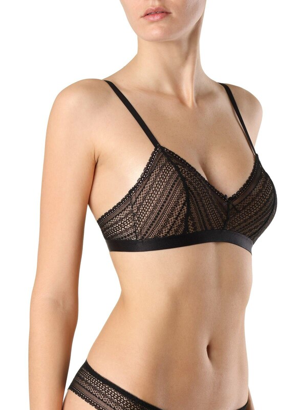 • треугольная чашка на дубляже с хлопком • без каркасов • упругие пластины в боковых деталях стана • широкая тесьма по нижней линии • ажурное кружево с орнаментальным рисунком • регулируемые бретели • чувственное и очень комфортное белье • подойдет подросткам в качестве первого бюстгальтера. полиамид 47%, хлопок 42%, эластан 11% Комментарии к товару
