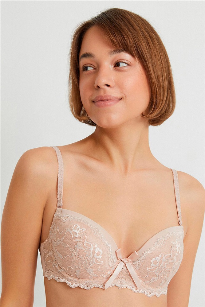 ID товара: 822655 Состав: Полиамид 85%, Полиуретан 15% Сезон: Осень/Зима Декоративные элементы: Кружево Основная ткань: Полиамид Модель лифа/бюстгальтера: С плотной чашкой Страна бренда: Россия Страна производства: Китай - Бюстгальтер из эластичной ткани, сетки и кружева, декорированный атласным бантиком по центру. - Модель T-Shirt с формованной чашкой без Push-up для всех размеров. - Бретели регулируемые, съемные. Комментарии к товару