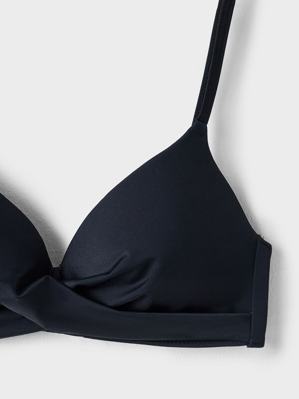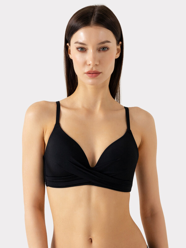 Очаровательный купальный бюстгальтер с формованными чашками без косточек. Верхний и нижний срезы стана обработаны резиной, которая помогает удерживать купальник на груди. Бретели также имеют резину внутри. Специальной полотно делает этот бюстгальтер идеальным для яркого солнца, открытой воды и бассейна – рекомендуем!