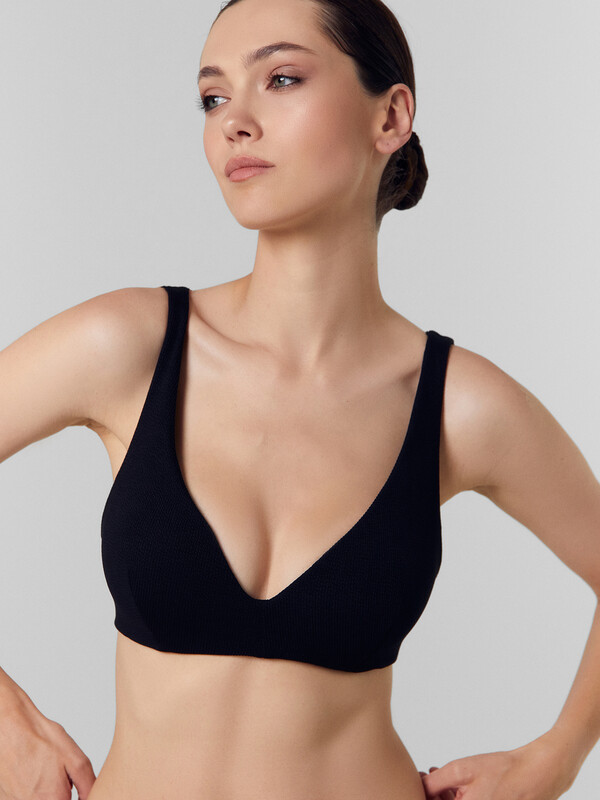 Бюстгальтер купальный из трикотажного полотна в рубчик на подкладке из полиамидного трикотажного полотна.