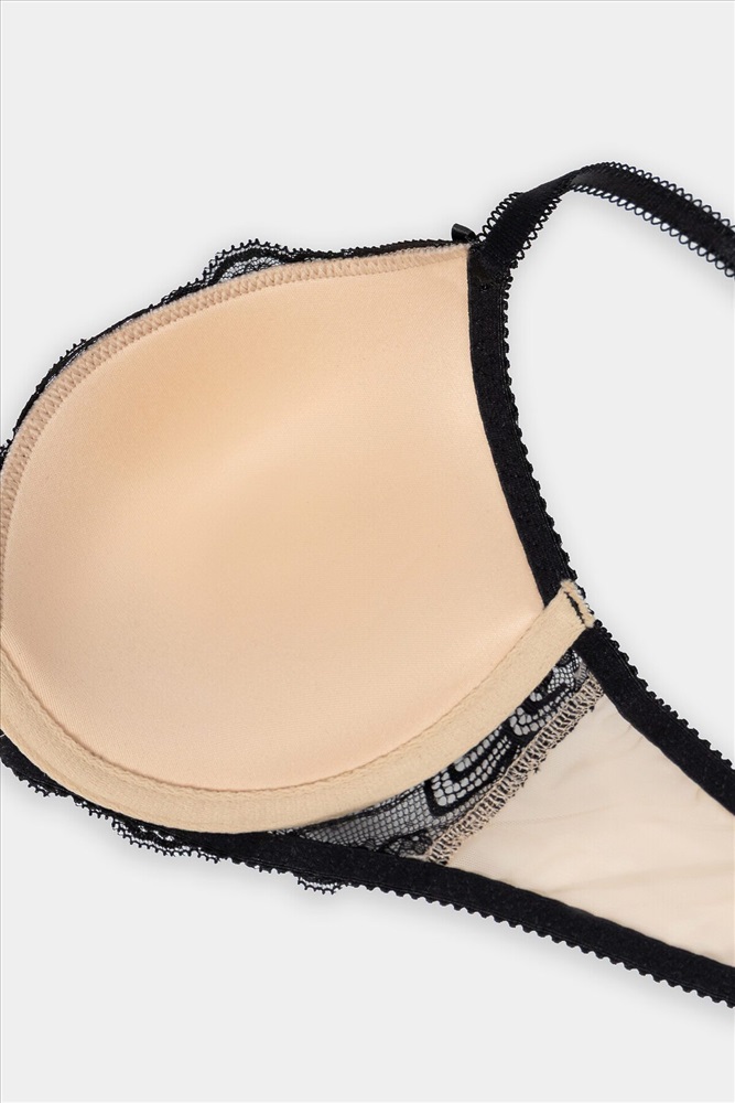 Соблазнительный бюстгальтер push-up с кружевом создан для подчеркивания женственных форм. Формованные чашки бюстгальтера из эластичного кружева обеспечивают идеальную поддержку и придают груди соблазнительный объем, а воздушная сетка по бокам добавляет легкость и комфорт. Этот бюстгальтер с кружевом сочетает в себе красоту и практичность. Эластичная тесьма по краям и регулируемые бретели обеспечивают идеальную посадку, а изящные бантики добавляют нотку романтичности.