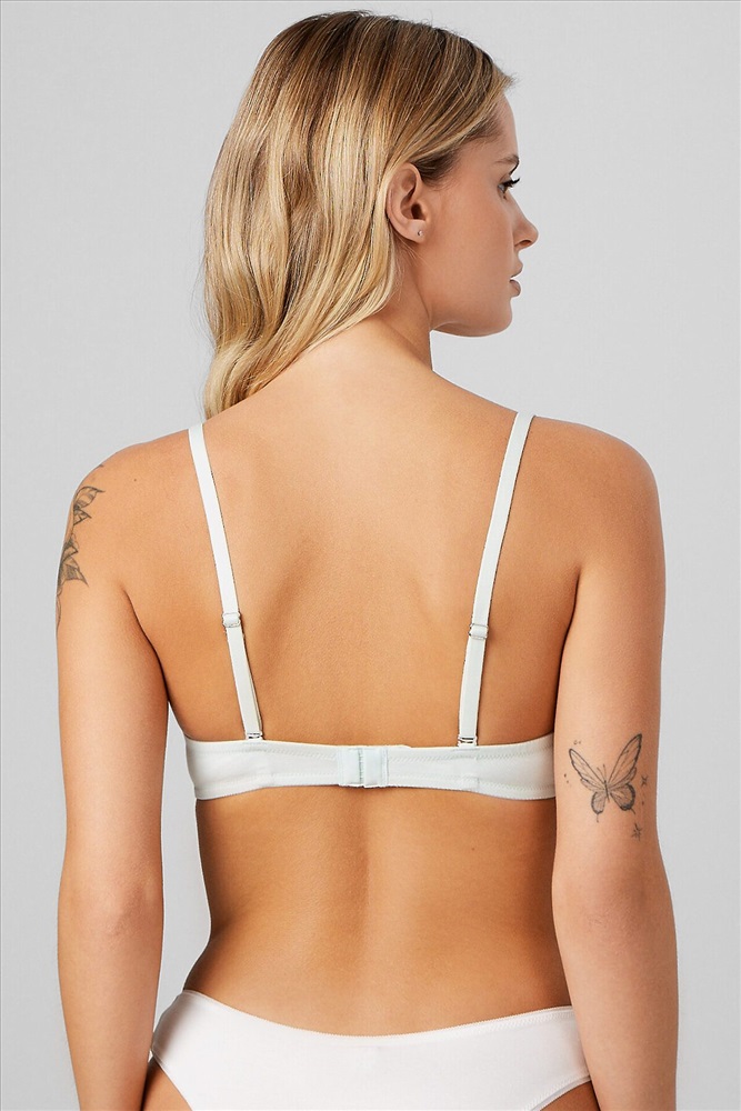 ID товара: 1193035 Состав: 80% Хлопок; 12% Полиэстер; 7% Эластан; 1% Полиамид Сезон: Демисезон Вид застежки: Крючок/петля Основная ткань: Хлопок Особенности белья: Регулировка бретелей по длине Уход: Деликатная стирка при 30 градусах Бюстгальтер: Под футболку Фактура материала: Кулирное полотно Чашка: Формованная без пуш-ап Страна бренда: Беларусь Страна производства: Беларусь Женский бюстгальтер t-shirt с формованными чашками создает идеально гладкую линию под облегающей одеждой. Модель выполнена из мягкого трикотажа с каркасными вставками для естественной поддержки без объема. Чашки анатомической формы мягко повторяют контуры тела, а внутренняя подкладка из гипоаллергенного материала обеспечивает комфорт в течение всего дня. Этот белый бюстгальтер отличается продуманными деталями: эластичная тесьма по верхнему и нижнему краю обеспечивает аккуратную посадку без врезания, а регулируемые бретели позволяют настроить длину под вашу фигуру. Надежная металлическая застежка на спине гарантирует удобство использования и долговечность. Вы можете купить женский бюстгальтер этой модели для повседневной носки — он остается незаметным даже под самым тонким топом. Универсальный цвет делает его базовым элементом нижнего белья, который сочетается с любым гардеробом. Практичный и комфортный, этот бюстгальтер станет надежным выбором для тех, кто ценит в белье одновременно незаметность, качество и совершенную посадку. Комментарии к товару